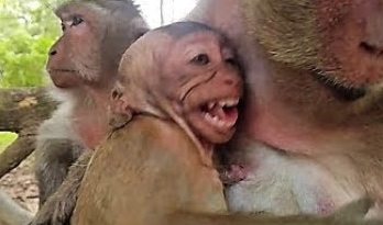 The mother monkey refused to give the baby monkey milk, the baby monkey got angry and shouted loudly Read More