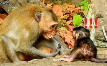 The old video titled “Breaking Heart! Baby Nori Crying Angry with Sister Liza Not Hug Her!” shows a tender yet emotional moment in the life of a young monkey family. …